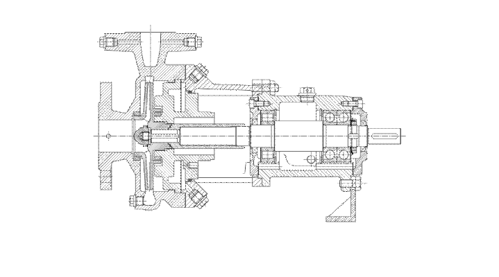 Pumpe su konstruirane po svim zahtjevima standarda API 610, sedmo izdanje. RPP pumpa izvedena je kao jednoulazna, s jednim stupnjem, horizontalna s aksijalnim ulazom tekućine i radijalnim izlazom usmjerenim prema gore. U spiralnom kućištu ugrađeno je kolo rotora pumpe koje je uklinjeno na vratilo. Vratilo je uležišteno u dva kuglična ležaja. Između spiralnog kućišta pumpe i nosača ležaja ugrađen je poklopac kućišta pumpe u kojem je smještena brtvenica. Noge na koje je pumpa oslonjena nalaze se u simetrali vratila. Pumpa je izvedena tako da je upotrebom spojke s međukomadom moguće rastavljanje pumpe i vađenje rotorskog dijela bez demontaže el. motora i cjevovoda. Pumpa ima jednodijelno, jednoulazno spiralno kućište koje je odlijevano s debljim stjenkama (dodatak na koroziju 3 mm). Prirubnice su izvedene po ANSI standardu. Kolo rotora je radijalno, jednostrujno zatvorenog tipa. Vratilo je uležišteno u dva mjesta kotrljajućim ležajima podmazivanim uljem i po potrebi hlađenim. Uravnoteženje aksijalne sile postignuto je leđnim raspornim prstenovima i provrtima izjednačenja tlaka na rotoru.